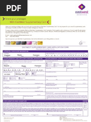 Supplementary Card Application Form Eastwest Bank 2020 Fill And Sign Printable Template Online Us Legal Forms